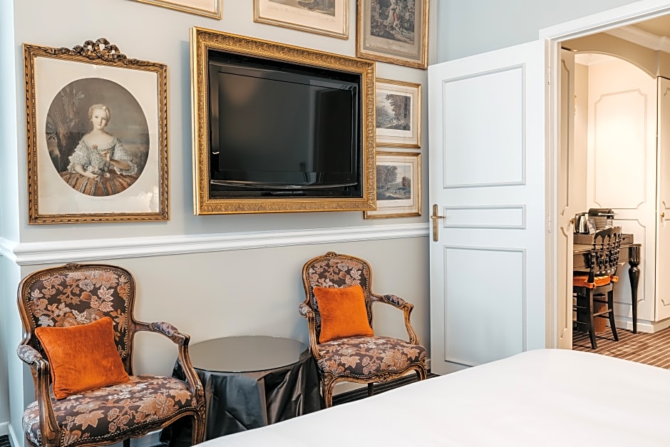 These period-style rooms feature Louis XV and Louis XVI furniture. Air conditioning, cable TV and a mini-bar come as standard. They also have a marble bathroom.